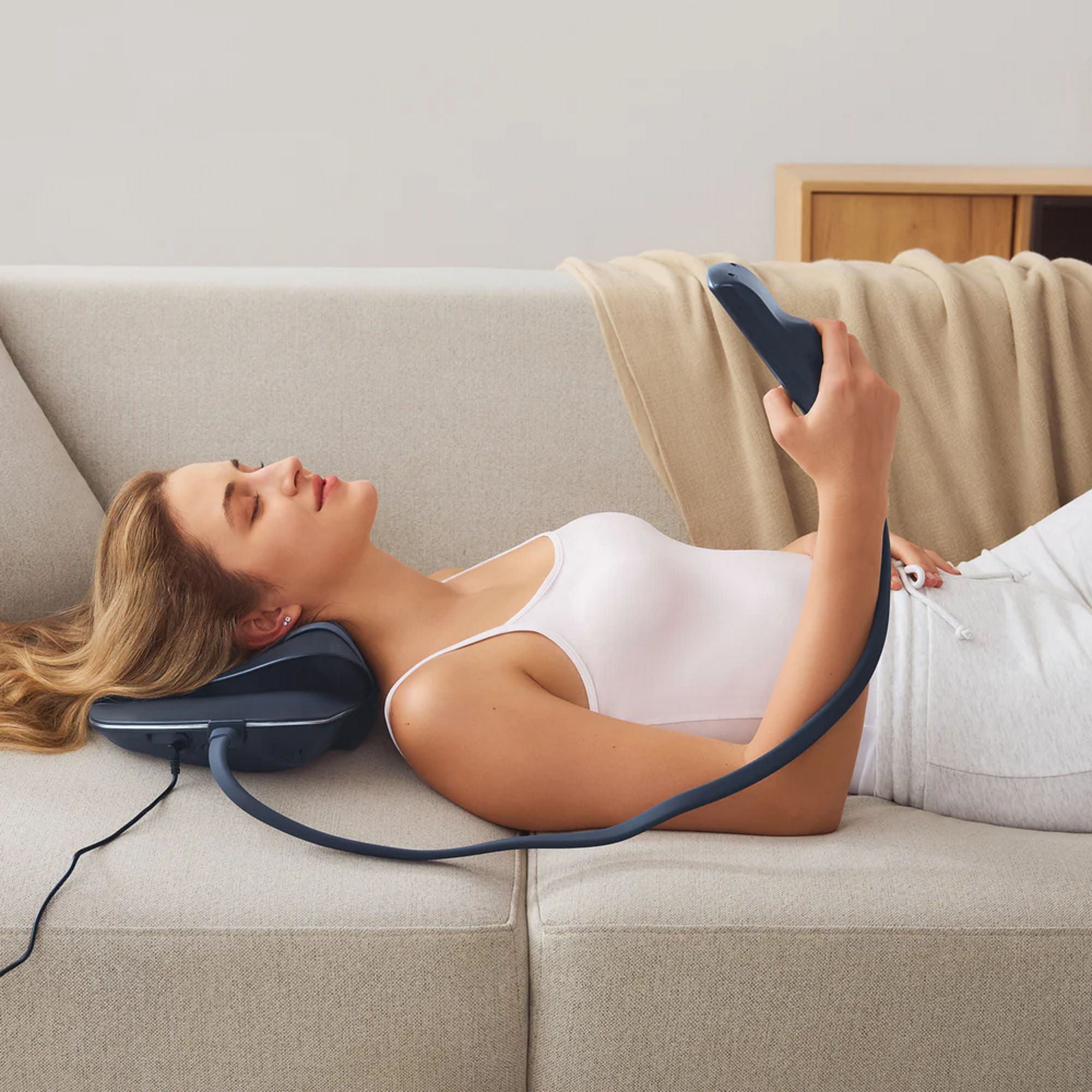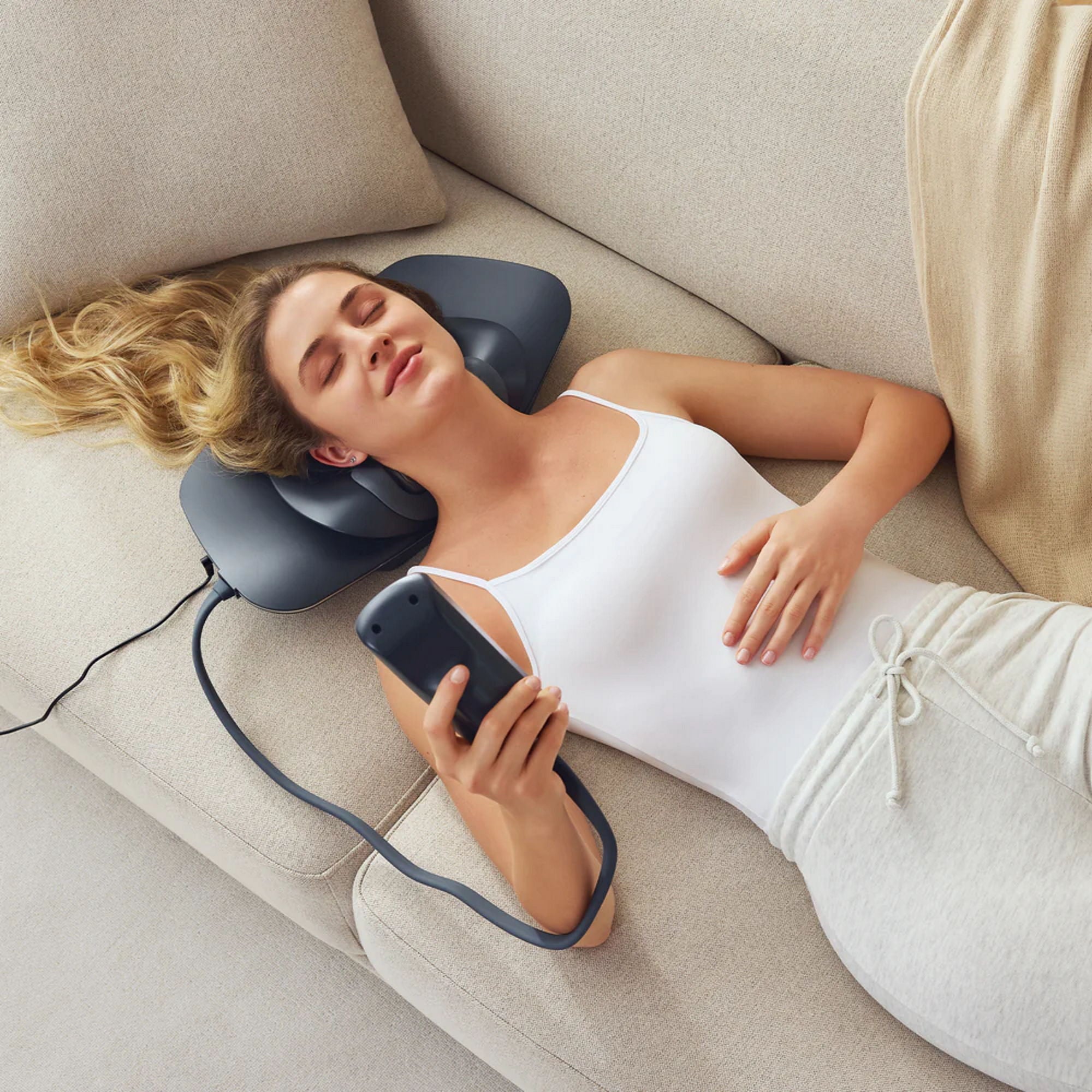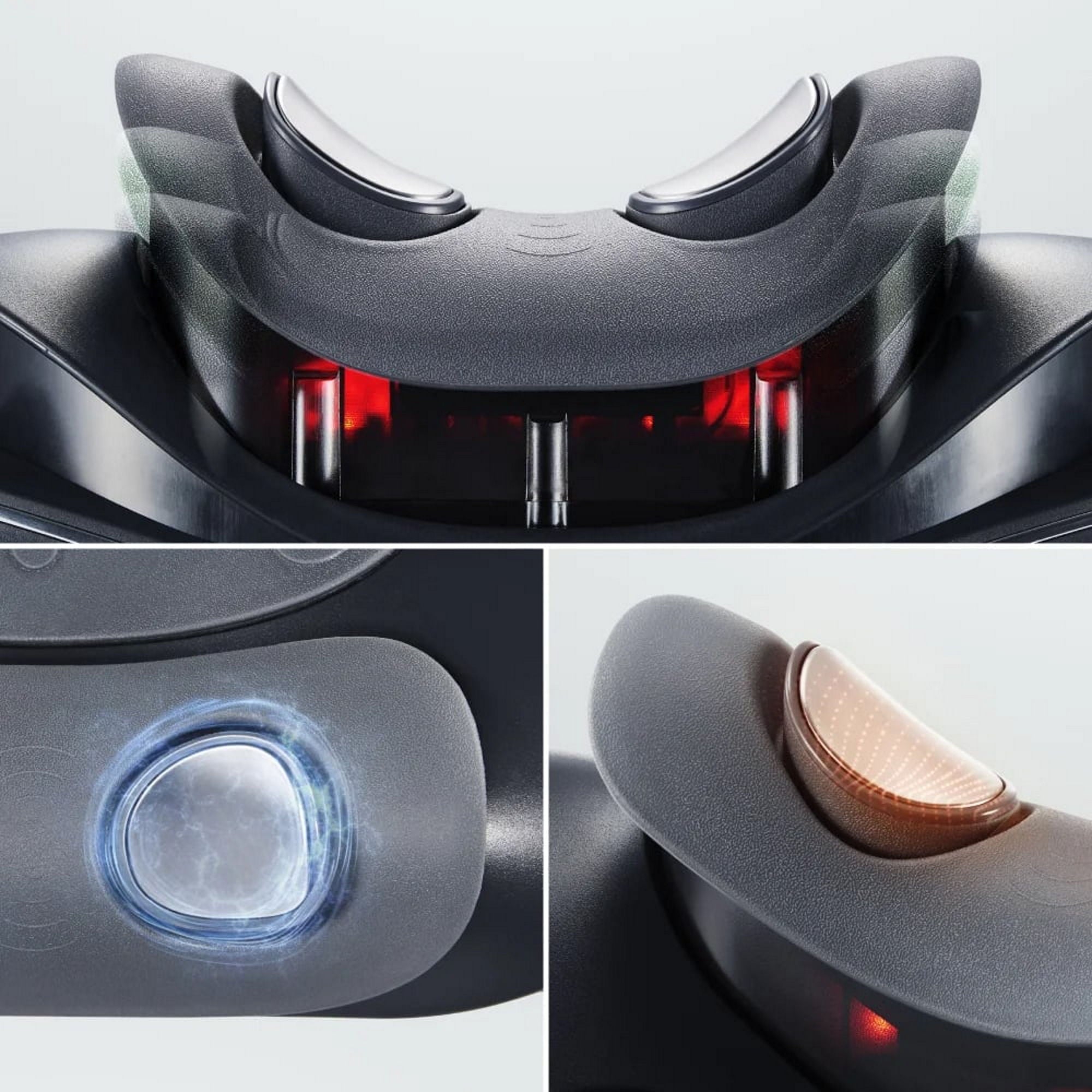 Diseñado con un soporte ergonómico, se adapta de manera segura a la anatomía del cuello, proporcionando comodidad personalizada. Sus funciones son completamente ajustables: 20 niveles de EMS, 3 modos de tracción y 3 niveles de calor, permitiendo usar cada función de forma independiente o combinada.